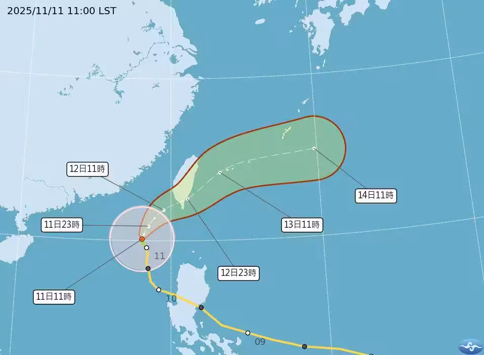 風雨預測方面,吳聖宇提醒,到今天晚間之前大台北東側、宜蘭到花蓮一帶都還是要注意共伴效應明顯降雨出現的情況,晚間後隨著共伴效應位置逐漸往北調整,陸地上的降雨才會減少下來。今晚到明天清晨前這段期間,也就是颱風暴風圈邊緣開始接觸南部沿海之前,主要的降雨區域會逐漸縮減到花東、恆春半島為主,宜蘭到大台北一帶的雨勢逐漸趨緩。