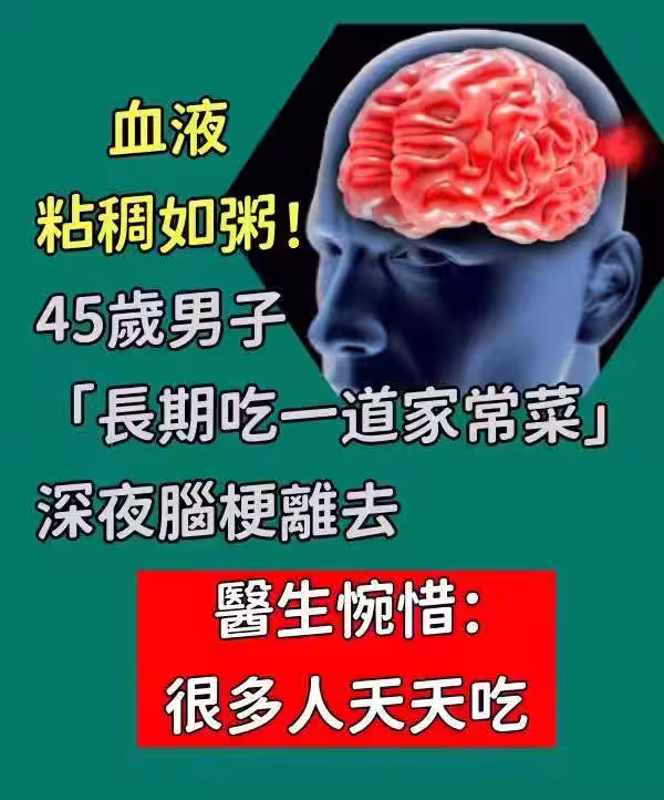 血液粘稠如粥!!45歲男子「長期吃一道家常菜」 深夜腦梗離去「醫生惋惜」:很多人天天吃