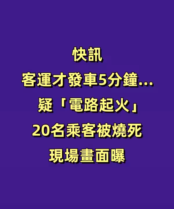 快訊/客運才發車5分鐘...疑「電路起火」20名乘客被燒死 現場畫面曝!
