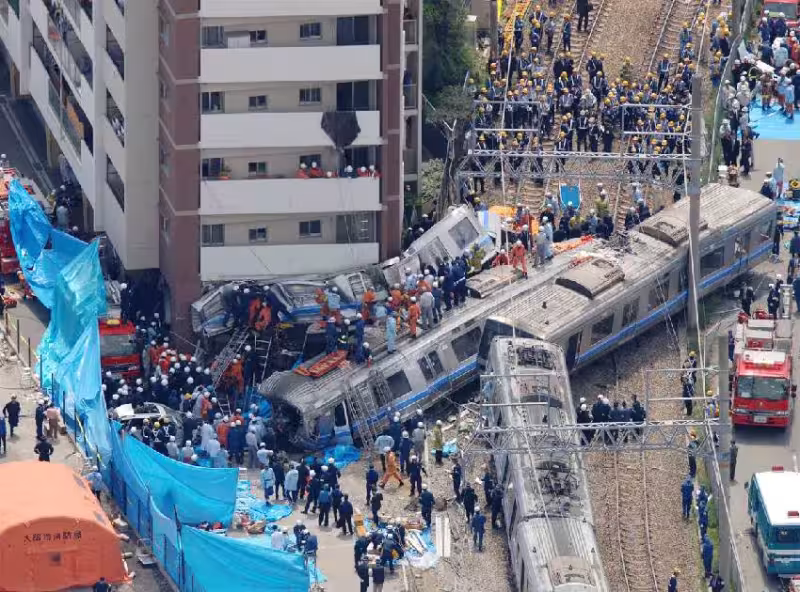 日本列車出軌釀107死562傷!2節車廂「撞入公寓大樓」, 出事原因曝光「駕駛害怕被罵」