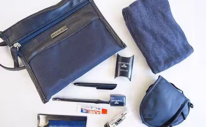 就洗漱包里的東西來說,基本的洗漱用品,比如牙膏、牙刷、洗面奶,是有的。