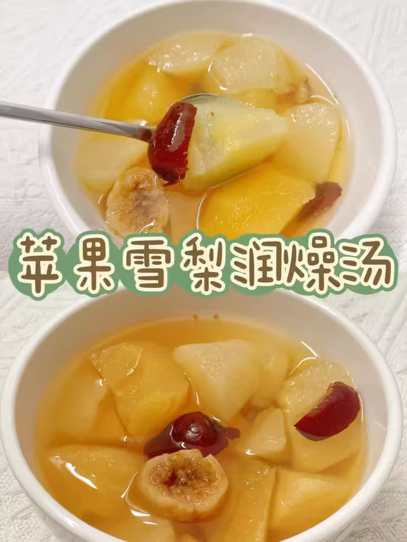 這道蘋果雪梨🍐水,分享給容易上火、經常口感舌燥的小姐妹。清潤甘甜,滋陰潤燥,還能滋補脾胃。0️⃣難度,大人小孩都可以喝。