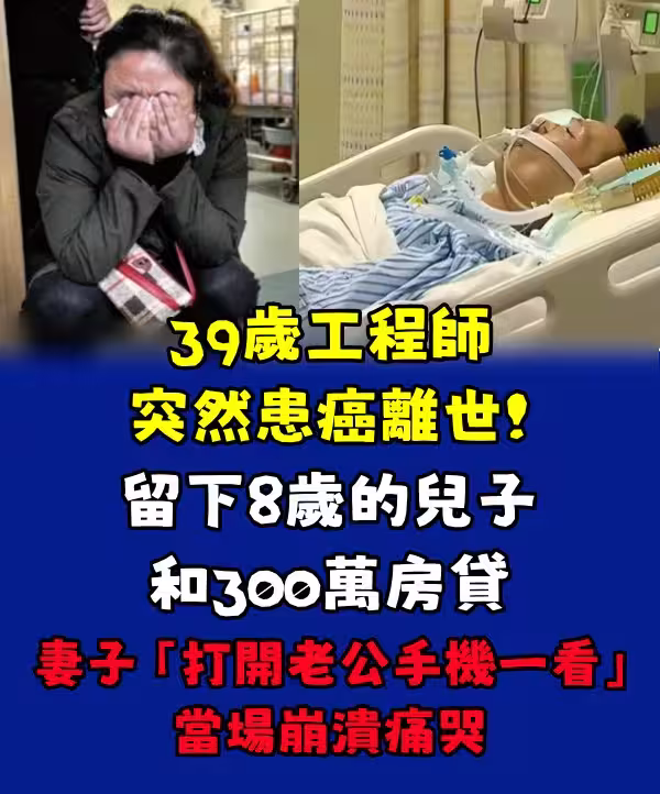 39歲工程師突然患癌離世!留下8歲的兒子和300萬房貸 妻子「打開老公手機一看」當場崩潰痛哭~
