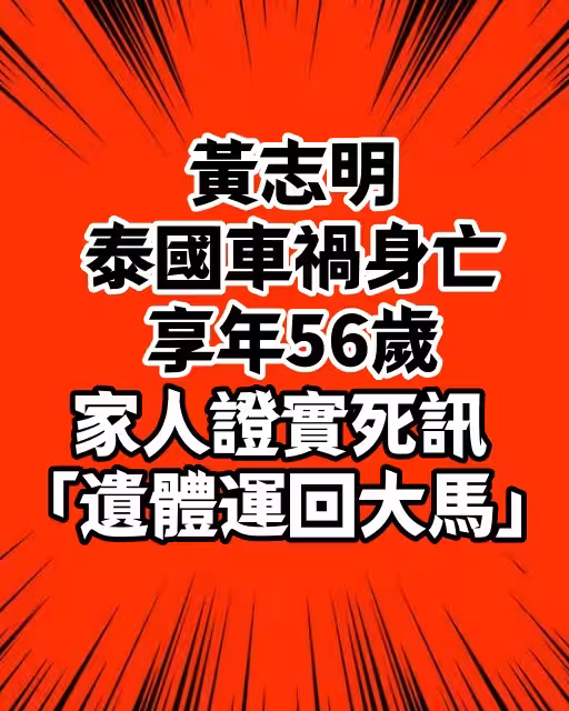 黃志明泰國交通事故身亡享年56歲 家人證實死訊「遺體運回大馬」