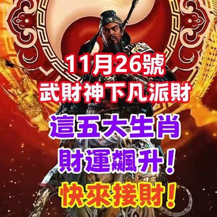 11月26號,武財神下凡派財,這五大生肖財運飆升!