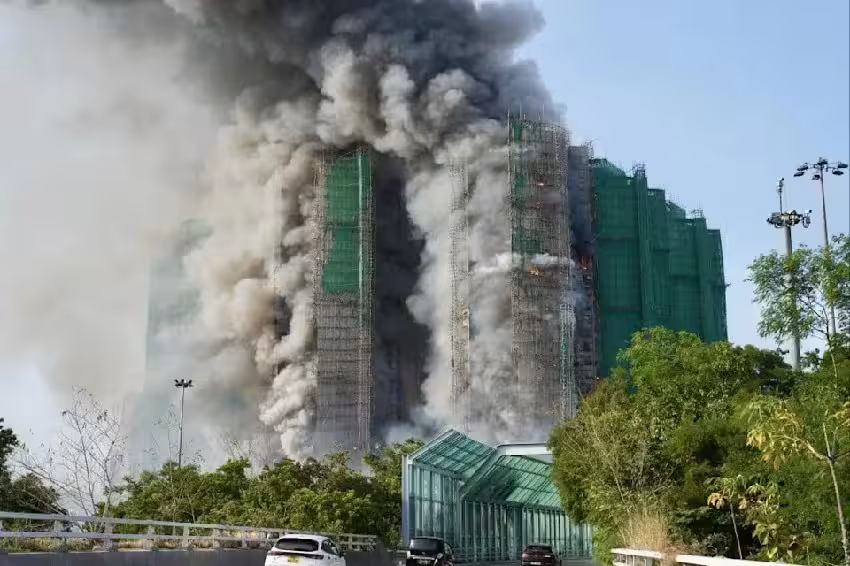 升至五級大火!香港大埔宏福苑惡火延燒 多棟高樓陷火海釀12死16傷