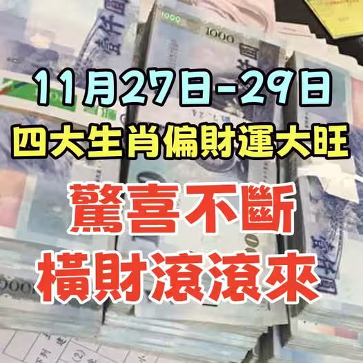 11月27日-29日,四大生肖偏財運大旺,驚喜不斷,橫財滾滾來