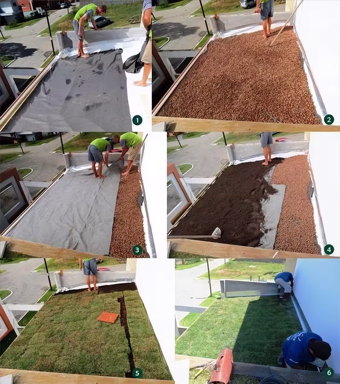 還可以學習外國人的做法,在屋頂上做個草坪,也能起到隔熱的作用,但是和常見的屋頂草坪不同的是,外國人會在草坪下面鋪層橡膠隔熱墊、毛氈墊、蜂窩墊,然後再撒上陶粒、砂礫,草坪種子,一共整整五層,能夠起到防積水、漏水和室內降溫的作用,而且從遠處看綠油油的一篇,比磚塊瓦礫都要好看。