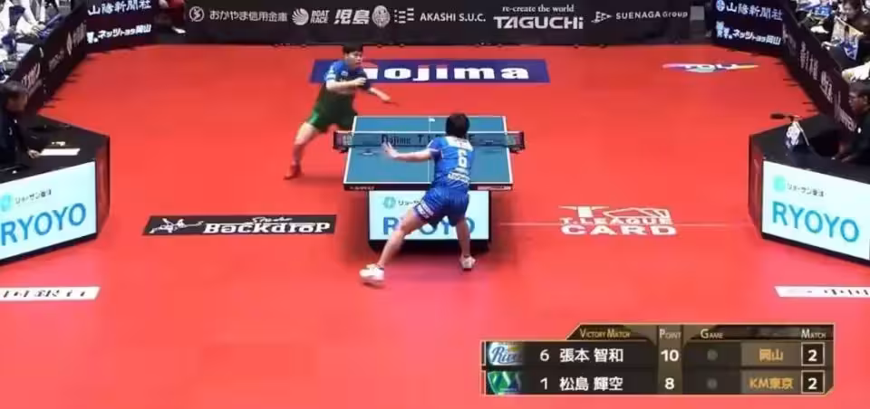 第三局,沒有退路的松島輝空展開絕地反擊,他以11-5挽救賽點,比分追成2-2,雙方進入決勝局。決勝局,松島輝空與張本智和兩人打得非常膠著,比分交替上升,8-8平手後,松島輝空連得三分,11-8贏下關鍵一局,總比分3-2逆轉張本智和。這場比賽,更為年輕的松島輝空的逆轉,讓張本智和非常鬱悶。