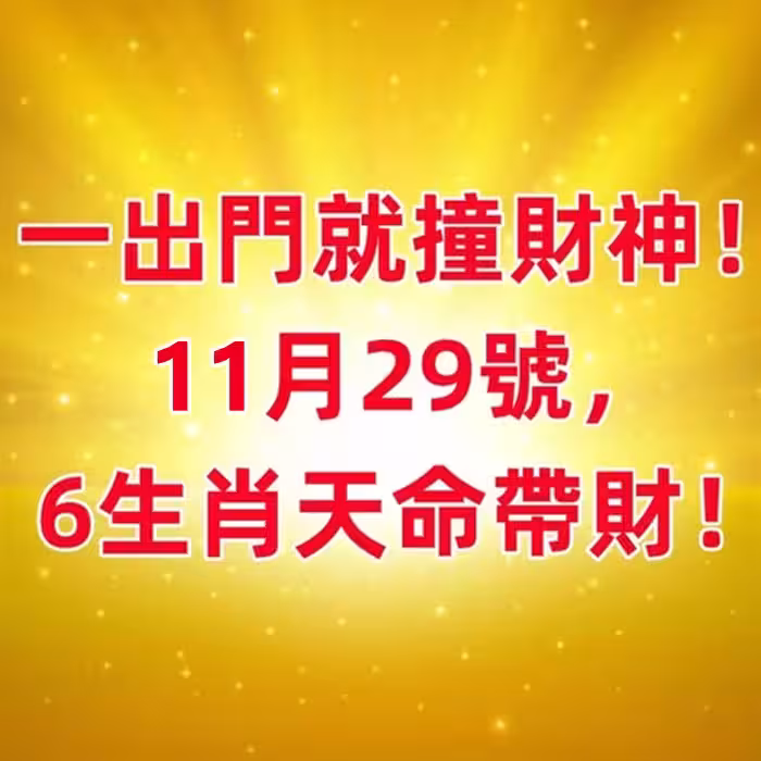 一出門就撞財神!11月29號 ,6生肖天命帶財 !