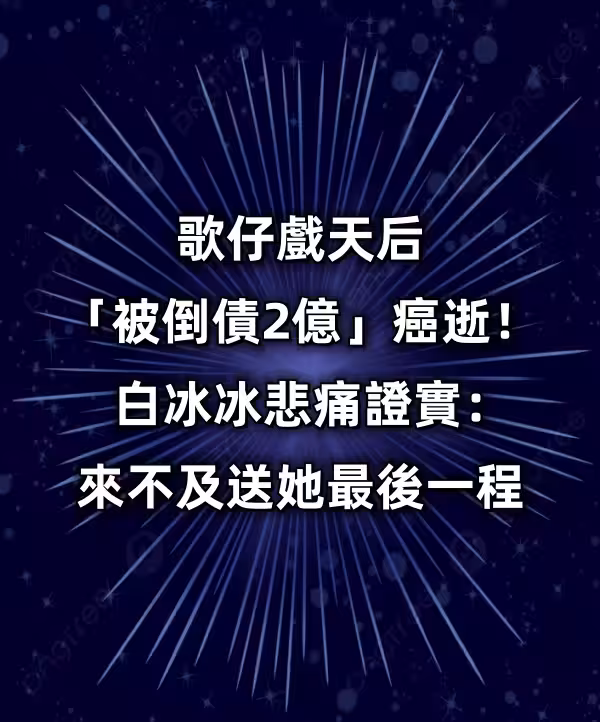 突發/歌仔戲天后「被倒債2億」癌逝!白冰冰悲痛證實:來不及送她最後一程~