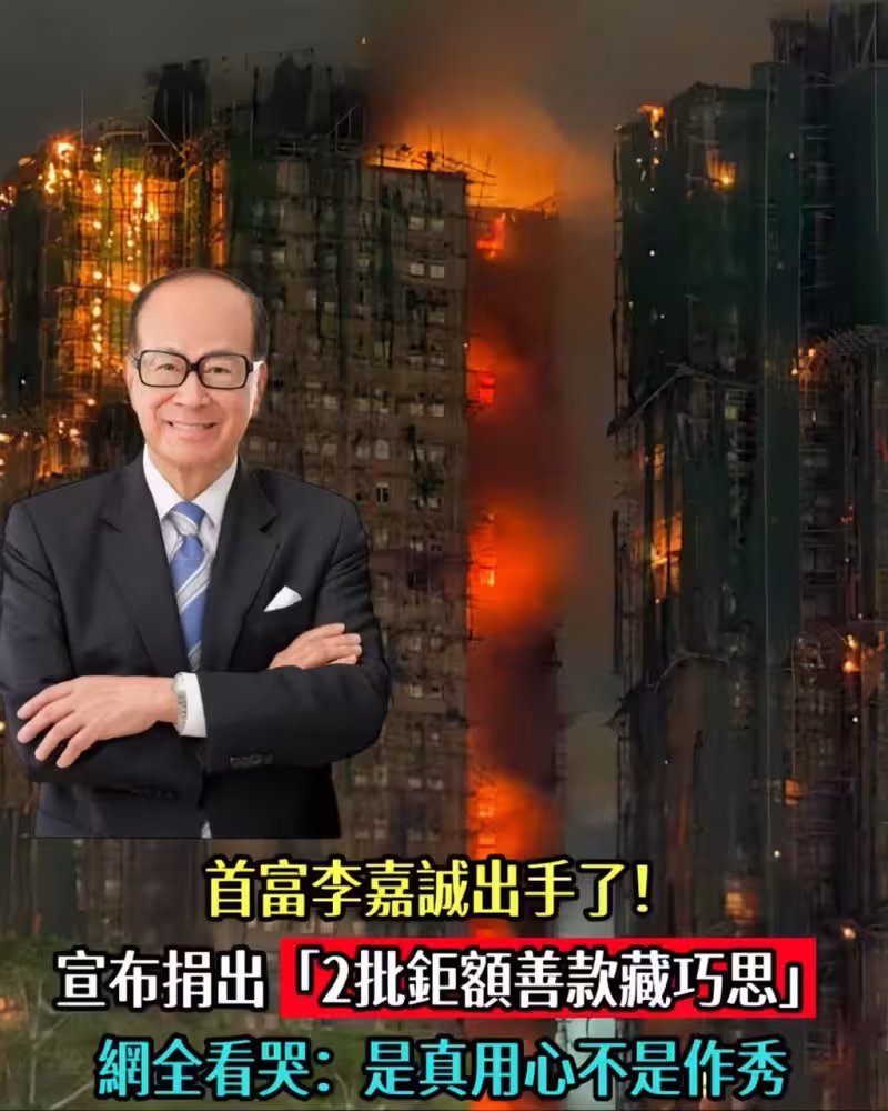 香港大火/首富李嘉誠出手了!宣布捐出「2批巨額善款藏巧思」網全看哭:是真用心不是作秀