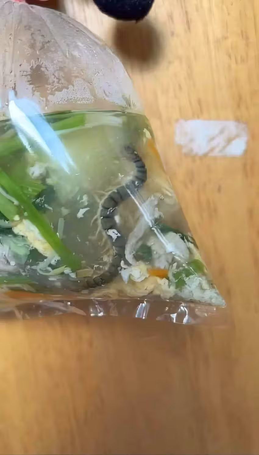 在原PO公開的照片中,發現在塑膠袋中應是裝著蛋花湯,但仔細一看,裡面竟有一條分為數節、形狀似蛇的動物屍體,讓他一瞬間頭皮發麻,原PO崩潰寫道,「這應該不是冬蟲夏草了吧?」文章曝光後,也馬上引來大批網友朝聖、留言。