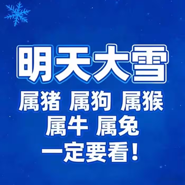 明天大雪「屬豬 屬狗 屬猴 屬牛 屬兔」一定要看!