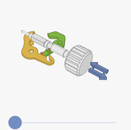 到目前為止,該機制並沒有做出任何有趣的事情,所以讓我們將撥針輪(橙色)放在活動機的頂部: