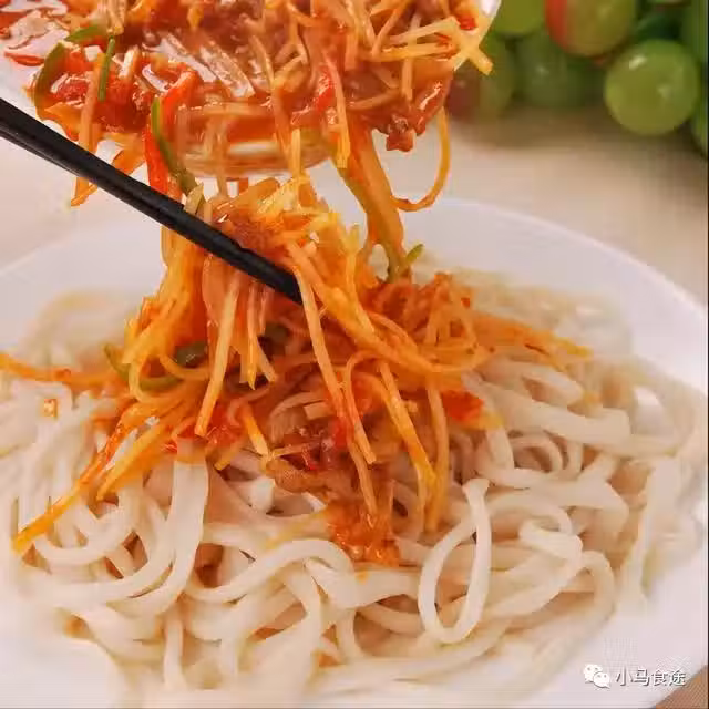 2.土豆去皮切成土豆絲,泡水備用。干辣椒洗凈切成長段。