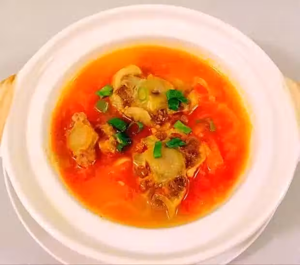用料:牛尾、番茄、洋蔥、食鹽、蔥、姜、料酒、番茄醬、香葉、植物油、