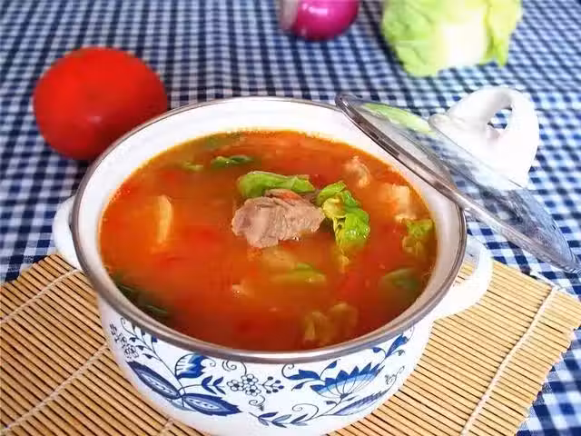 4.熬開後倒入牛肉湯中繼續煮,直到蔬菜軟爛即可。