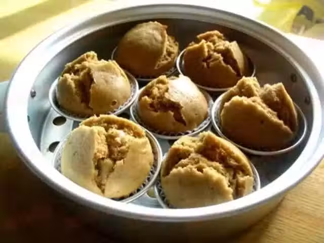 3、蒸鍋預熱至水開後,將做法2的麵糊倒入紙模中,放入蒸籠中蒸約20分鐘左右即可取出。