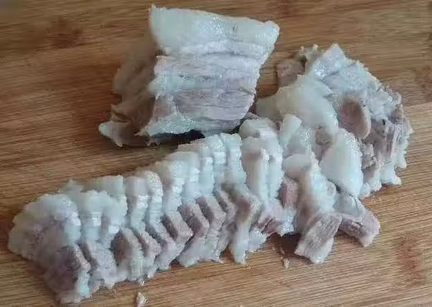 第三步,然後準備半碗高湯或者開水,往裡面加入食鹽,陳醋,香油,用筷子將其攪拌均勻後,再倒入紅油當中繼續攪拌,最後把冷卻好的五花肉取出,放到砧板上,用刀切成薄厚均勻的片狀,為了增加菜品的外觀,還可以將豬肉切好後放到盤中擺好造型,往上面撒上一些蒜蓉,香菜,淋上調製好的醬汁,這樣一道美味的白切肉就製作完成了。