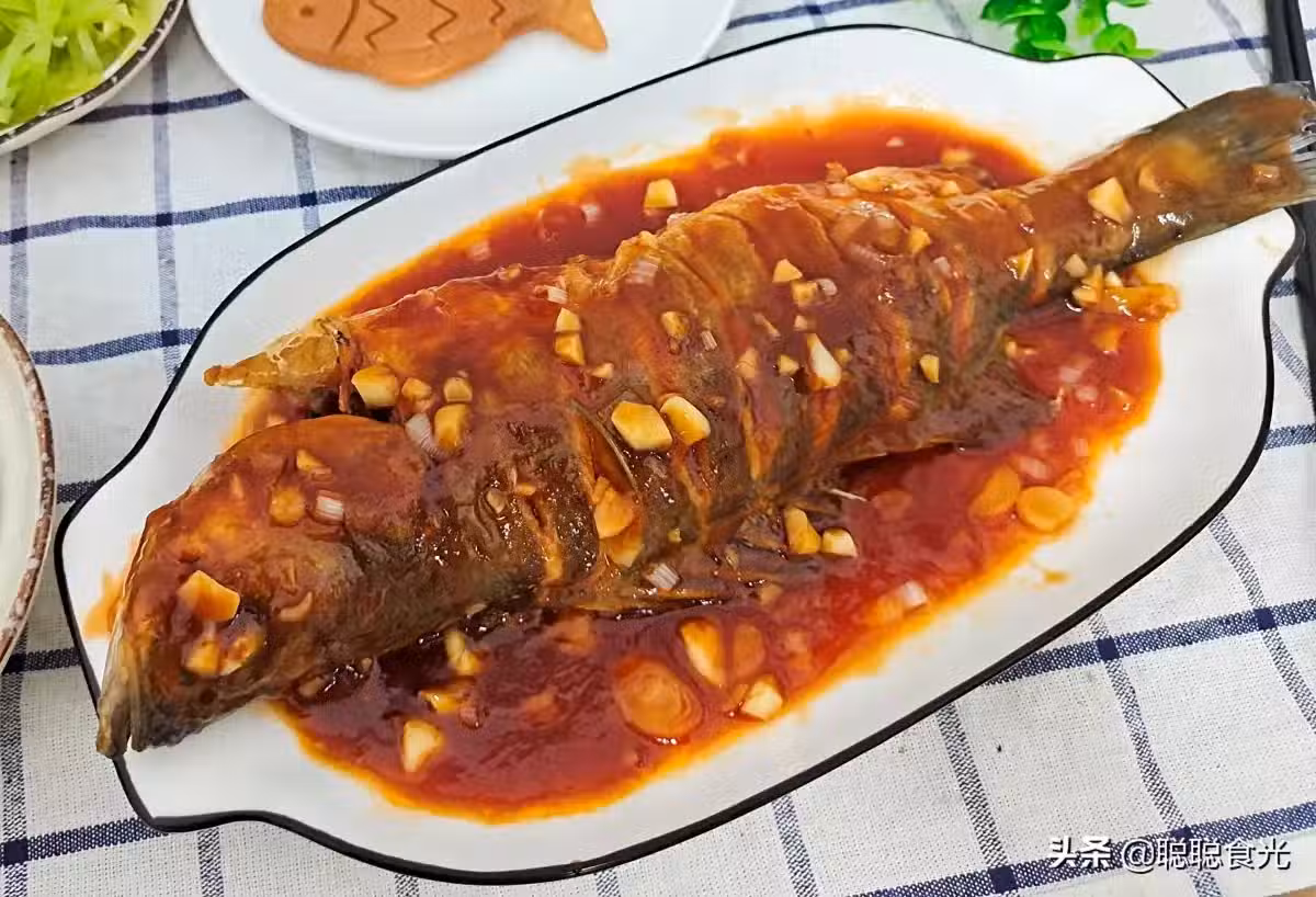 5、把糖醋汁均勻地淋在魚身上,糖醋鱸魚就做好了。