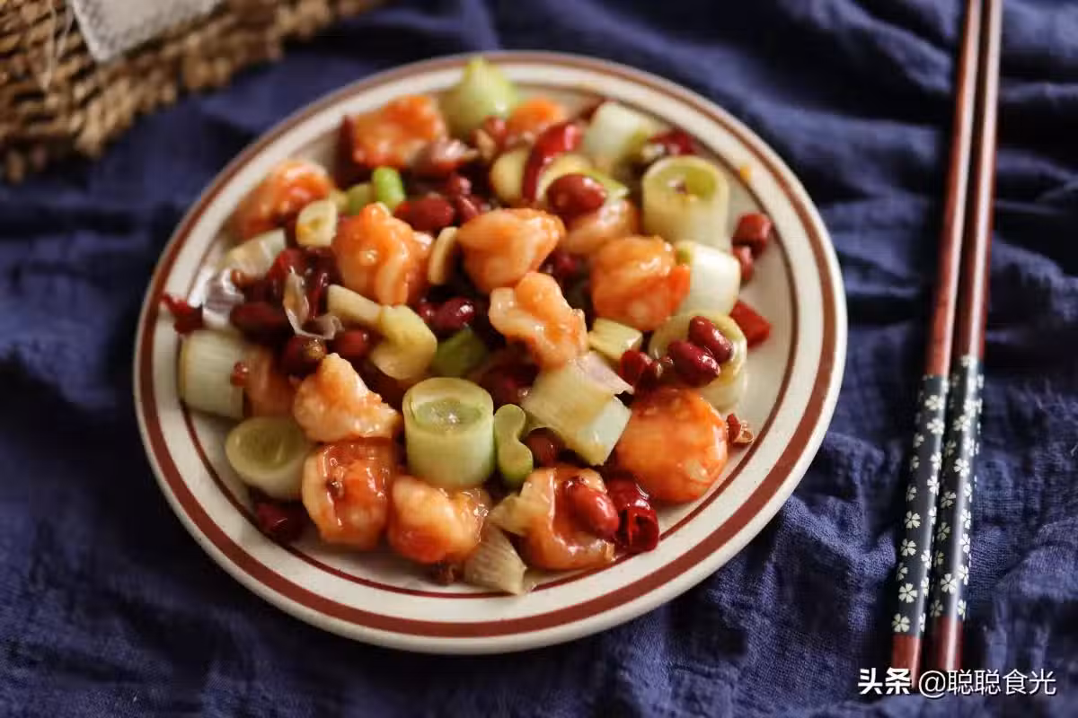 【準備食材】鮮蝦,花生米,蔥姜蒜,花椒,干辣椒,料酒,生抽,蚝油,白醋,白糖,澱粉,鹽