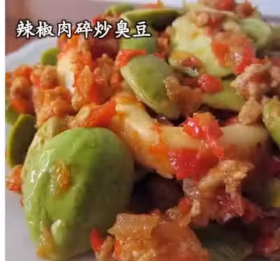 材料:臭豆,肉碎,花枝/蝦,辣椒和小辣椒(打碎),洋蔥(打碎),蒜米