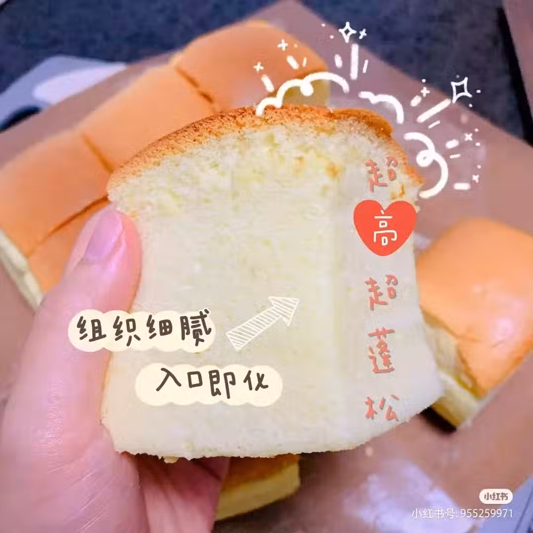 如果想要組織更細膩 可以在我的配方量上打發蛋白時加入15g玉米澱粉(同時低筋麵粉要減10g)