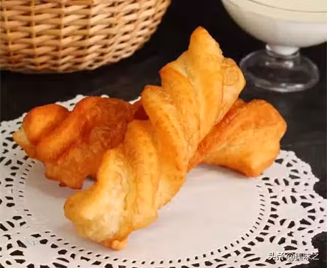 7、加熱200度油鍋,放入油條,炸至金黃,炸好的油條放在廚房用紙上濾油。
