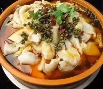 食材:魚身肉、金針菇適量、干尖椒,花椒、鹽、生抽、雞精、澱粉、雞蛋、薑絲