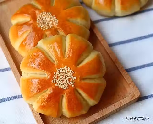高粉15克(湯種)、低粉50克、雞蛋25克、水75克(湯種)、奶粉10克、酵母3克、鹽3克、糖25克、黃油20克、豆沙餡適量、白芝麻適量、全蛋液適量。
