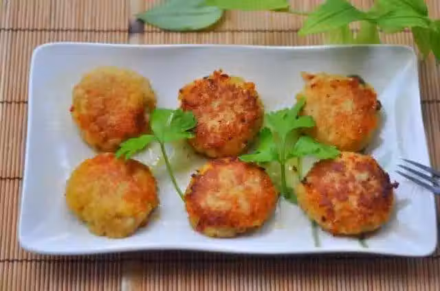 3. 再加土豆泥、鹽攪拌,做成餅胚