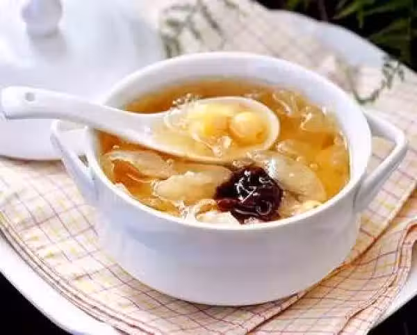 2)銀耳和蓮子放入燉鍋,燉到銀耳粘稠。