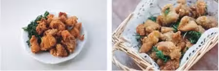 ◎等雞塊表面的紅薯澱粉變潮後再炸,這樣可以防止澱粉下油鍋後容易脫落。