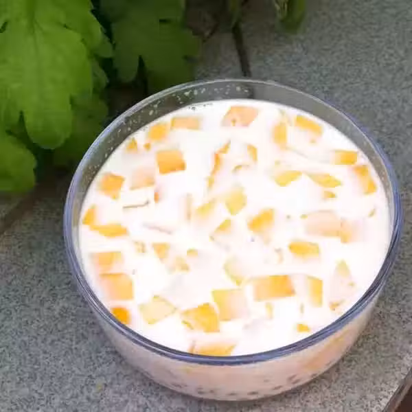 3 西米用清水泡發1個小時,鍋內注入適量清水燒開加入西米煮至透明狀關火。以清水沖洗後泡在涼水中以免粘在一起