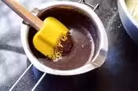 12.攪拌均勻的可可溶液倒入拌好的麵糊里;