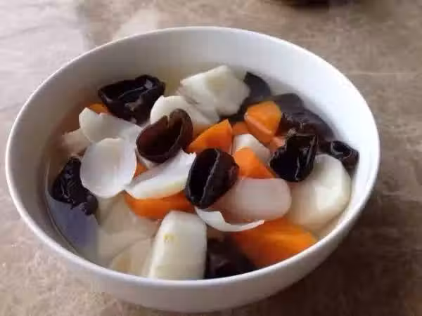 材料:山藥 、胡蘿蔔 、木耳 、鹽