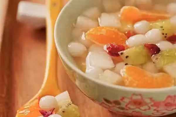 4.把煮好的小圓子裝入水果甜湯碗中。