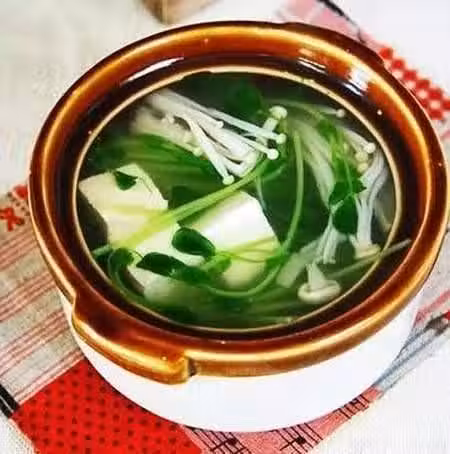 7、待湯再次煮滾沸騰,倒入豌豆苗即可關火,調入鹽調味。