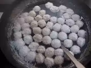 小貼士:1.製作魚蓉前,魚肉要放入清水中浸漂半小時,其間換水2-3次,以除去魚肉中的血污,這樣做出來魚圓子才白。 2.魚肉與澱粉按照重量是4:1比例加入。 3.攪動魚蓉的時候要沿著同一方向攪動。 4.鹽和水的量也不是完全固定的,所以做好的魚蓉先試水,在個乾淨碗里放冷水,擠一個丸子進去試下,若是能懸浮或者浮在水上,說明成功了,如果沉入水底,說明鹽多了或者水少了或者沒攪好,繼續攪拌。