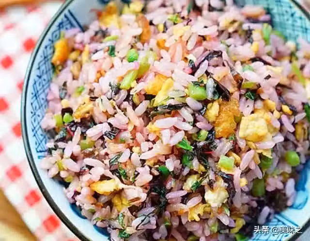 冷飯1份、雞蛋3個、莧菜300克、肉丁適量、香蔥適量、醬油適量、細鹽適量。