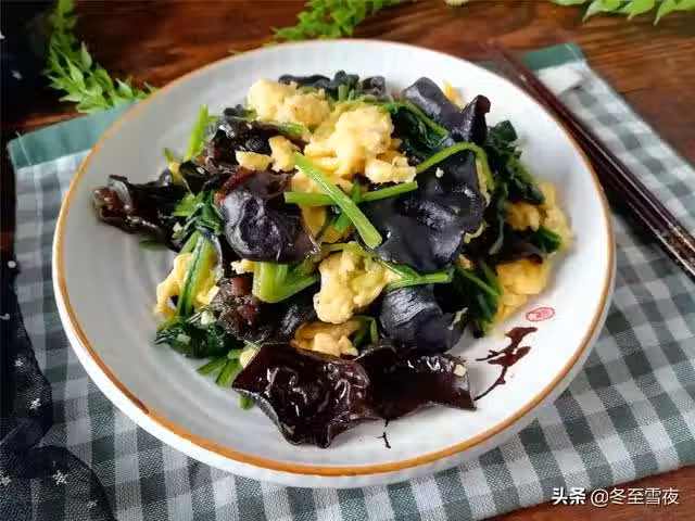 【木耳菠菜炒雞蛋】材料:黑木耳(干)50克、菠菜200克、雞蛋3個、油鹽適量、蔥1段、大蒜2瓣、