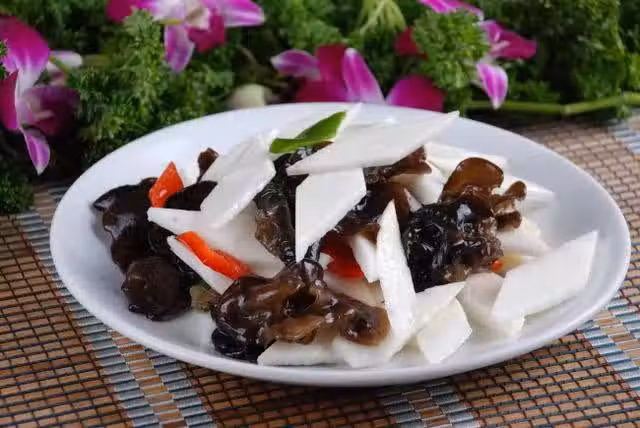 5. 鍋內留底油倒入木耳翻炒兩分鐘。
