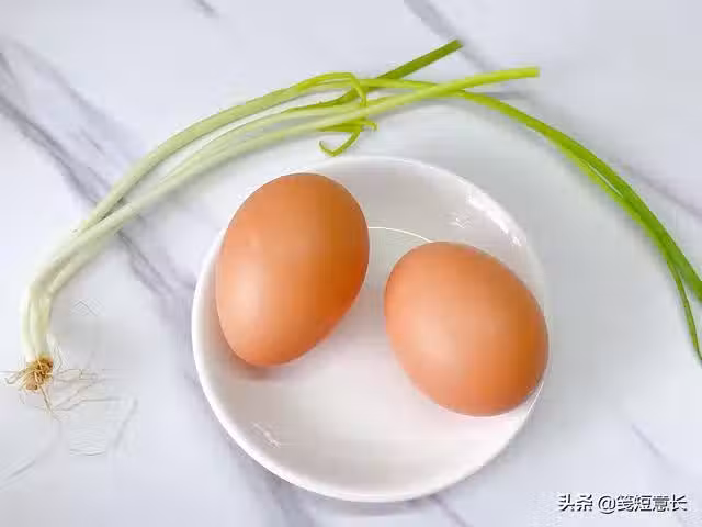 2、將雞蛋磕入準備好的碗中,今天做的這款雞蛋羹不準備用保鮮膜,所以必須用溫開水,凈化過的水雜質少一點兒,蒸出來的蛋羹口感比較細膩。兩個雞蛋用160毫升左右的水足夠了。將小蔥去除老葉和根須,洗乾淨切碎末備用。