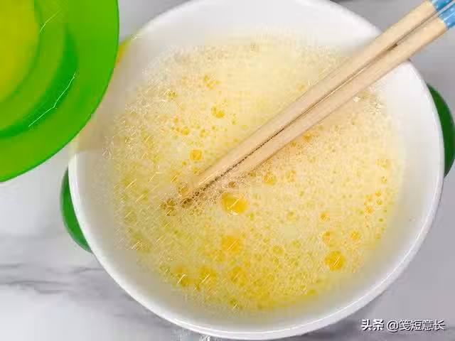 5、用勺子將蛋液上面的浮沫兒小心盛出去,不然蒸出來的蛋羹口感不夠細膩。