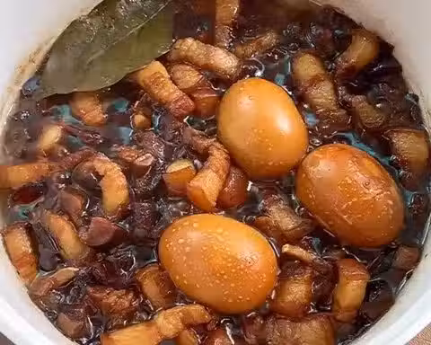 7 加幾個煮熟的雞蛋,燜煮一個小時左右,即可