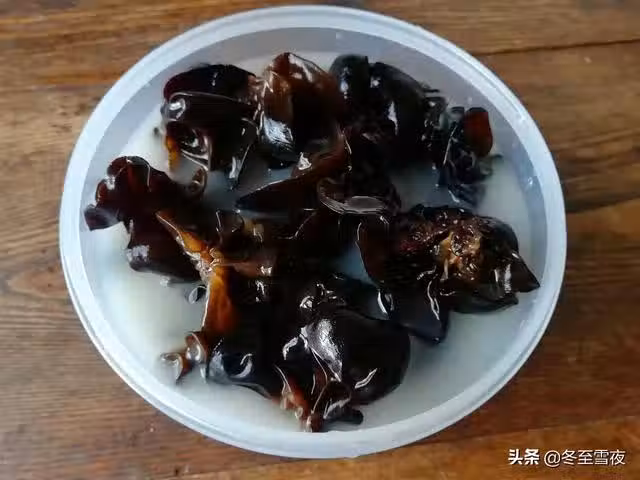 用冷水泡發:木耳用冷水泡可以很好的保持住木耳原本的營養物質。經過3-4小時的浸泡,冷水泡木耳可以讓木耳在涼水中慢慢吸水、浸透,使其恢復新鮮木耳的半透明狀,出成率也很高,口感非常脆爽,黑木耳就能吸足水分,恢復到生長時的物理狀態。不能泡的太短或太長,時間太短,它沒有吸足水分,膠質狀組織不能復原,時間太長,子實體內的成分和膠質物析出,組織鬆軟,營養成分流失,口感變差。