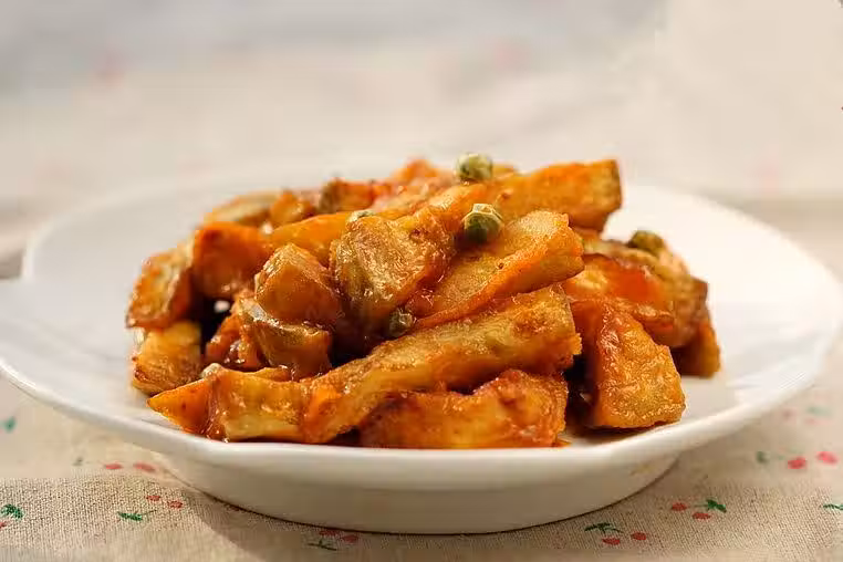 1. 將圓茄子去皮後切成細長條;2. 加入少量的鹽腌制一下;3. 再撒入點干澱粉攪拌均勻;4. 茄子放入鍋中煎至兩面金黃後撈出備用;5. 鍋中留少許油,下入番茄醬和適量的鹽和鮮蔬粉炒均勻;6. 再放入青豆和少量的水煮開收濃;7. 最後加入煎好的茄條翻炒均勻即可;