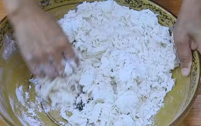 1、盆中加入500克麵粉,撒入3克的酵母,加溫水揉成面絮,再按壓成麵糰,蓋上鍋蓋,發酵1個小時。在等待發酵的時間,我們準備包子餡。