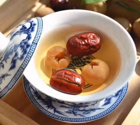 3)將紅棗、桂圓放入壺內。4)加入開水。
